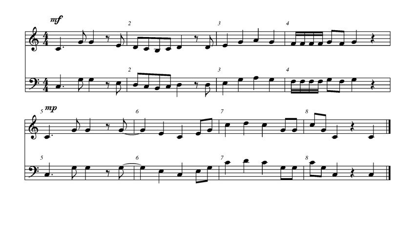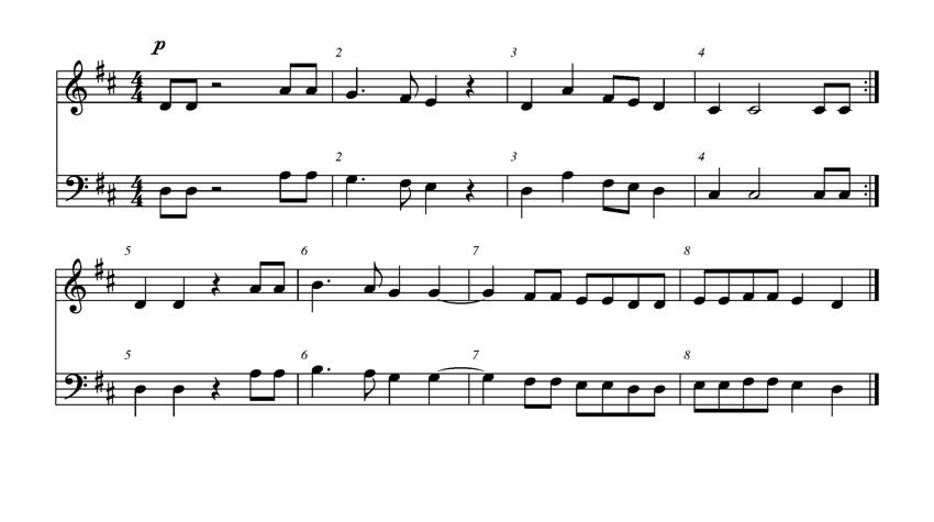 Drag the Solfege syllables next to the correct notes for the key of D, with Do at the top of the list.