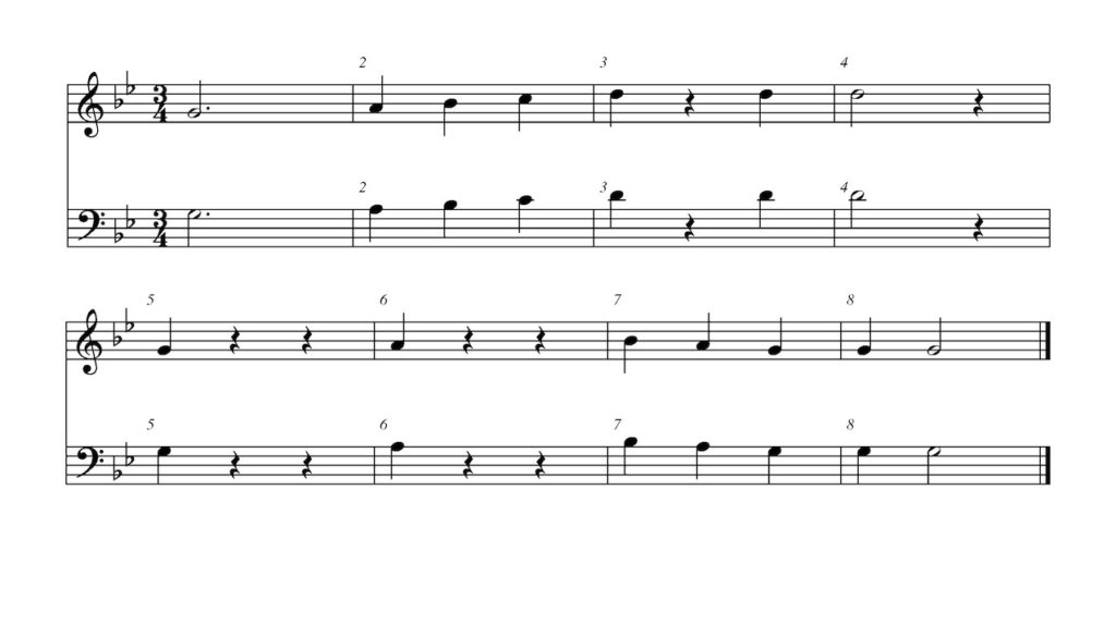Drag the notes next to the appropriate syllable for the key of g minor.