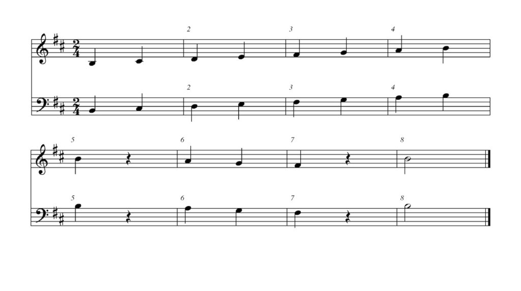 Drag the notes next to the appropriate syllable for the key of b minor.