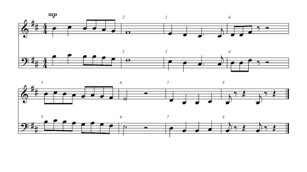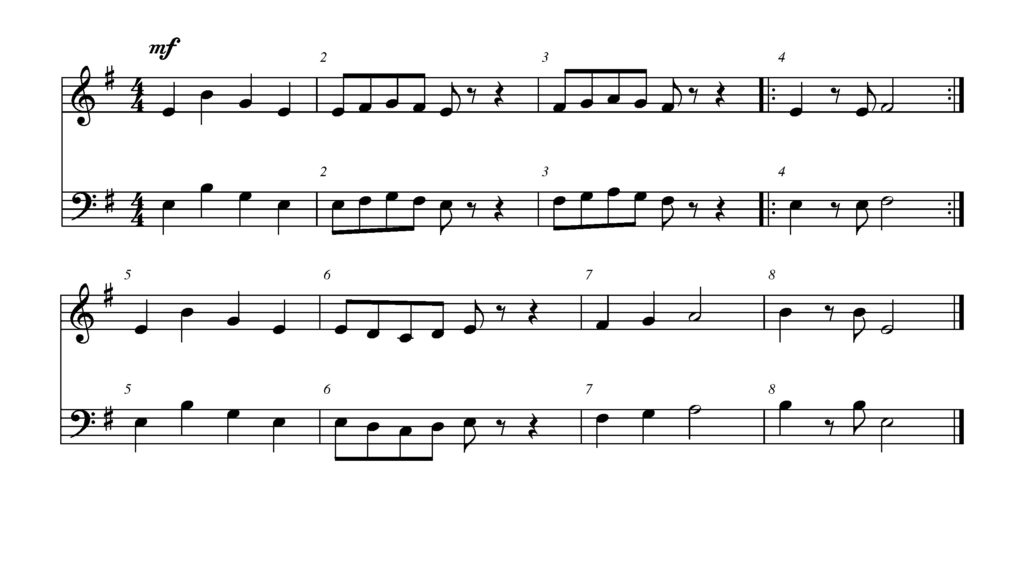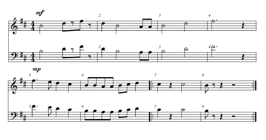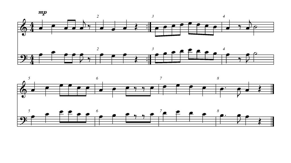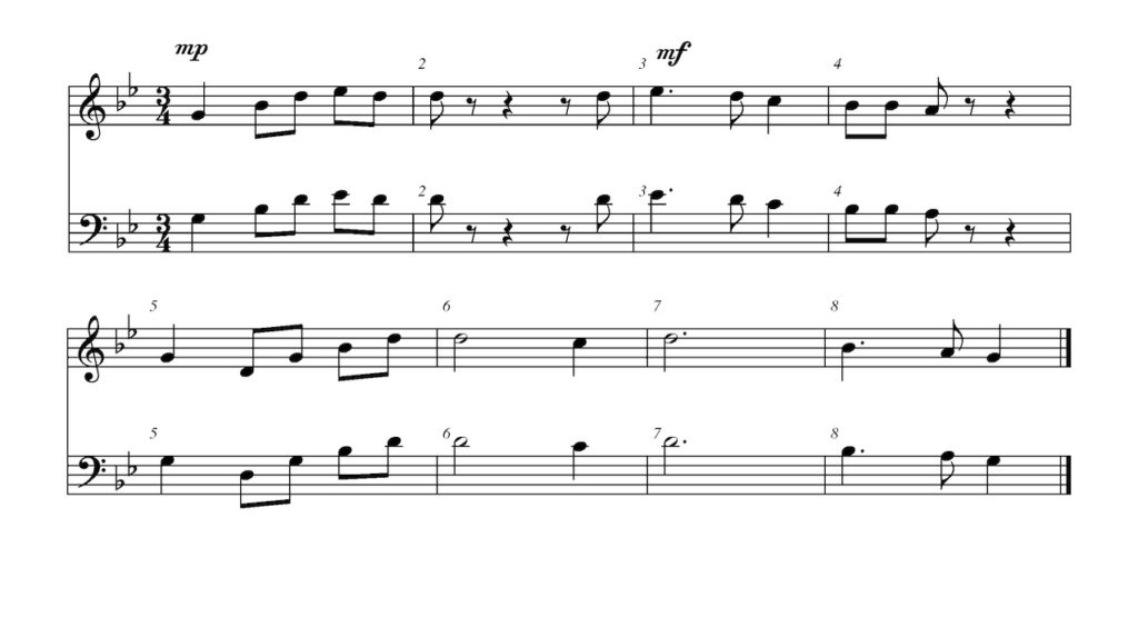 In measure five the dynamics change to mp. Is that louder or softer than the beginning?