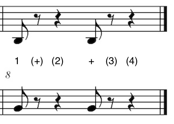 Mathematically speaking, the two eighth note rests in measure 6 could be written as: