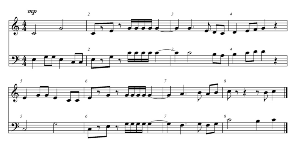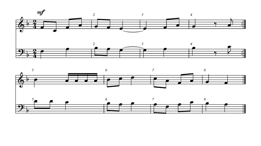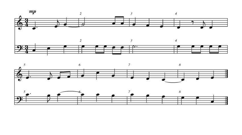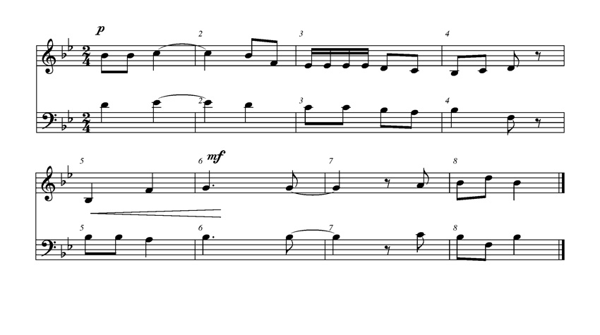 In measure 4, the men and women both sing the same kind of note at the end of the measure. What kind of note is it?