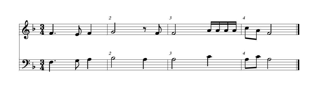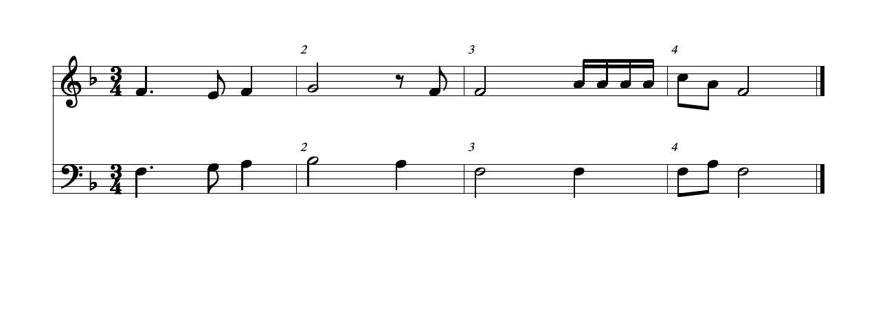 In measure 4, the men and women both sing the same kind of note at the end of the measure. What kind of note is it?